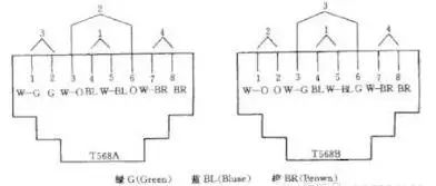 11、 對絞線在信息(xi)插座(RJ45)相連時(shi),必須按色標和(he)線對順(shun)序(xu)進行卡接。插座類(lei)型(xing),色標和(he)編號應符T568A、T568B的規(gui)定。如下圖所示(shi)。
